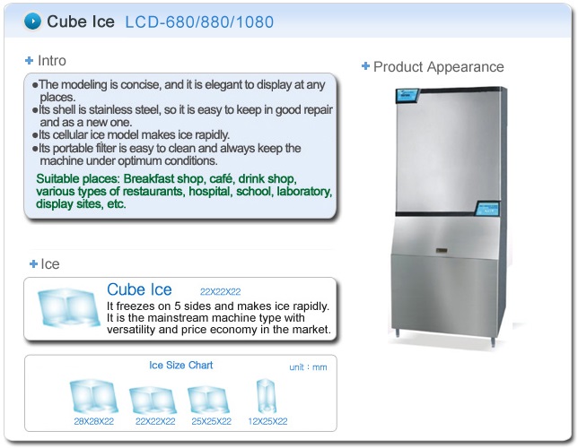 - Optimum ice production is at ambient temperature 10℃ and water temperature at 10℃.