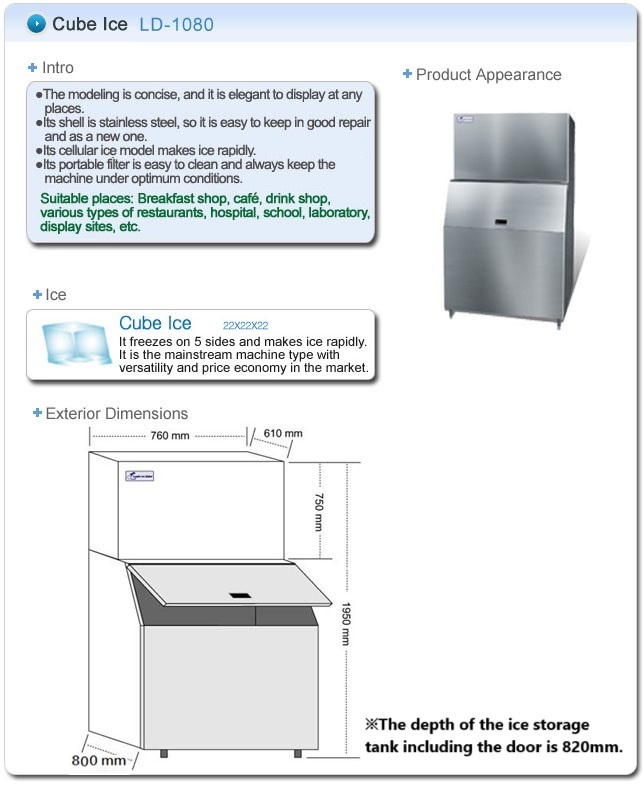 - Optimum ice production is at ambient temperature 10℃ and water temperature at 10℃.