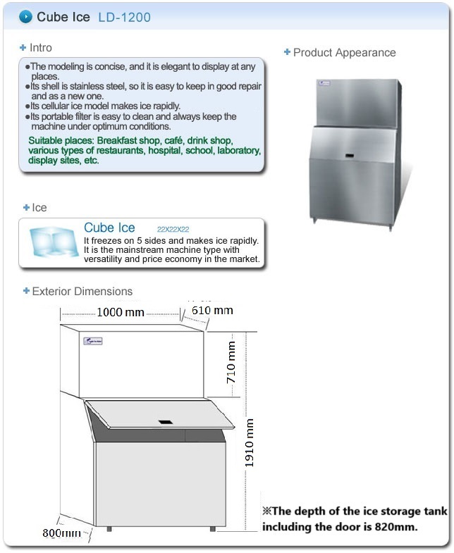 - Optimum ice production is at ambient temperature 10℃ and water temperature at 10℃.