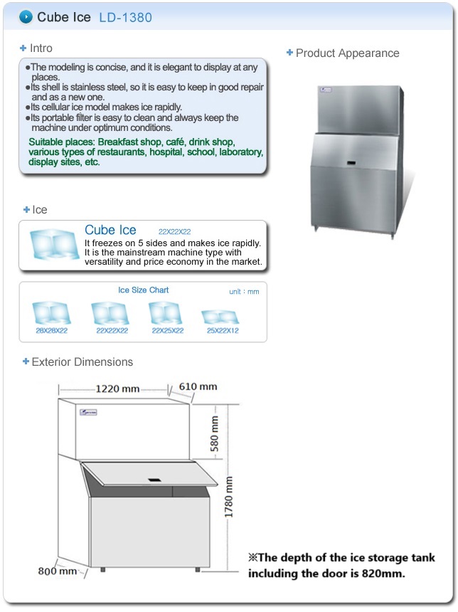- Optimum ice production is at ambient temperature 10℃ and water temperature at 10℃.