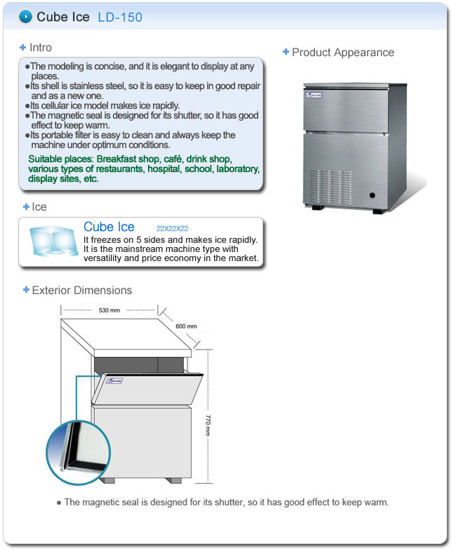 - Optimum ice production is at ambient temperature 10℃ and water temperature at 10℃.