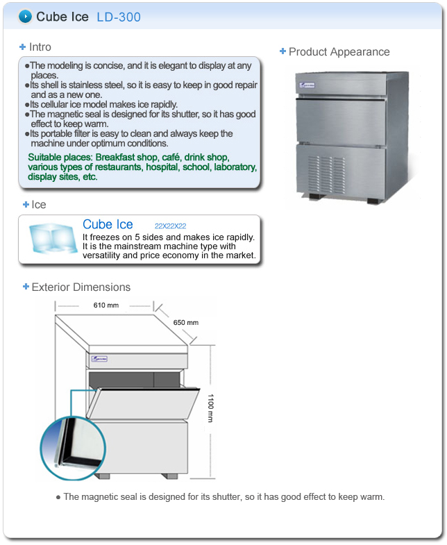 - Optimum ice production is at ambient temperature 10℃ and water temperature at 10℃.