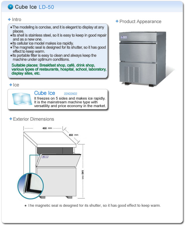 - Optimum ice production is at ambient temperature 10℃ and water temperature at 10℃.