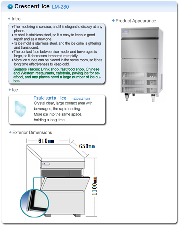 - Optimum ice production is at ambient temperature 10℃ and water temperature at 10℃.
